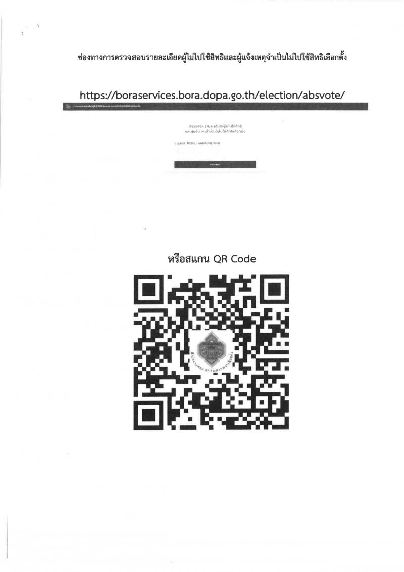 รายละเอียด : การประกาศบัญชีรายชื่อผู้มีสิทธิเลือกตั้งที่ไปใช้สิทธิเลือกตั้งและมิได้แจ้งเหตุที่ไม่อาจไปใช้สิทธิเลือกตั้งหรือแจ้งเหตุที่ไม่อาจไปใช้สิทธิเลือกตั้งแล้วแต่เหตุนั้นมิใช่เหตุอันสมควร สามารถตรวจสอบด้วยตนเองได้จากเว็บไซต์ : https://boraservices.bora.dopa.go.th/election/absvote/