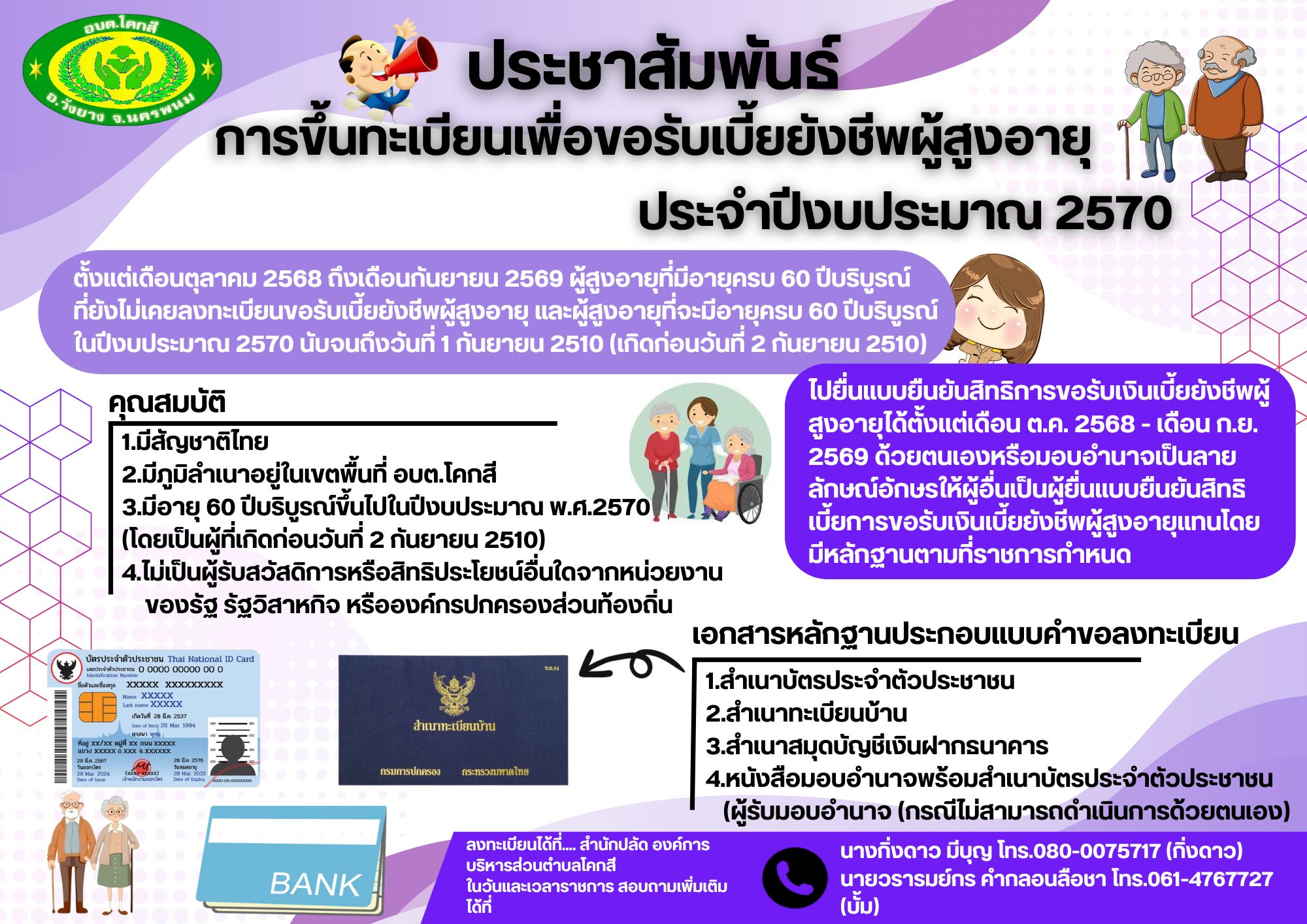 ประชาสัมพันธ์การขึ้นทะเบียนเพื่อขอรับเบี้ยยังชีพผู้สูงอายุ ประจำปีงบประมาณ 2570